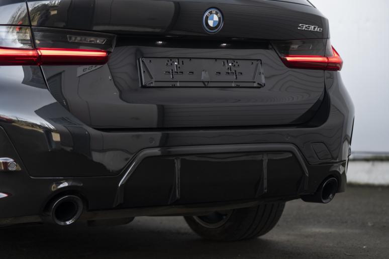 Wie bieden u met heel veel plezier voor aan de volgende erg mooie BMW 330 e Touring M-Sport. De BMW is uitgevoerd Safierzwart metallic, met een Zwart Vernesca lederen interieur met de niet veel geziene M Sport stoelen, dit zijn dezelfde stoelen zoals in een BMW M3. Dit in combinatie met de mooie hoogglans zwarte velgen en donkere accenten maakt dat hier een 330e met veel uitstraling staat.